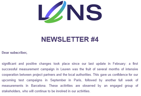 As LENS has recently reached its half-way point, our latest newsletter #4 took stock of the successful LENS measurement campaign in Leuven in Spring 2024, which was attended by our City- and Stakeholder Platform. Besides several reports from conferences, you can also find the most recent deliverables, news, and upcoming events in the latest version of our handy news update.